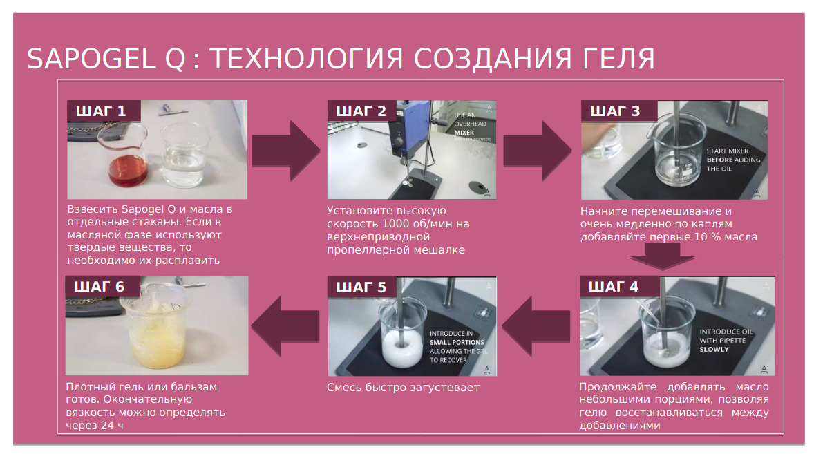 При добавлении раствора лимонный кислоты / гидроксида натрия в гель побочные эффекты не наблюдаются. По сравнению с масляными загустителями на основе эфиров сахарозы (например, SUCRAGEL), SAPOGEL Q можно использовать для создания более густых и насыщенных составов.